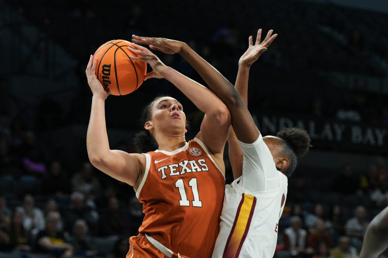 Connecticut stays on top, retaining 28 of 31 first-place votes. The Lady Longhorns, who took the other No. 1 votes, move up to No. 2 after taking down both UCLA and South Carolina at the Players’ Era event in Las Vegas. The voters were kind to the Gamecocks and Bruins, however, as each falls just one position to No. 3 and 4 respectively.