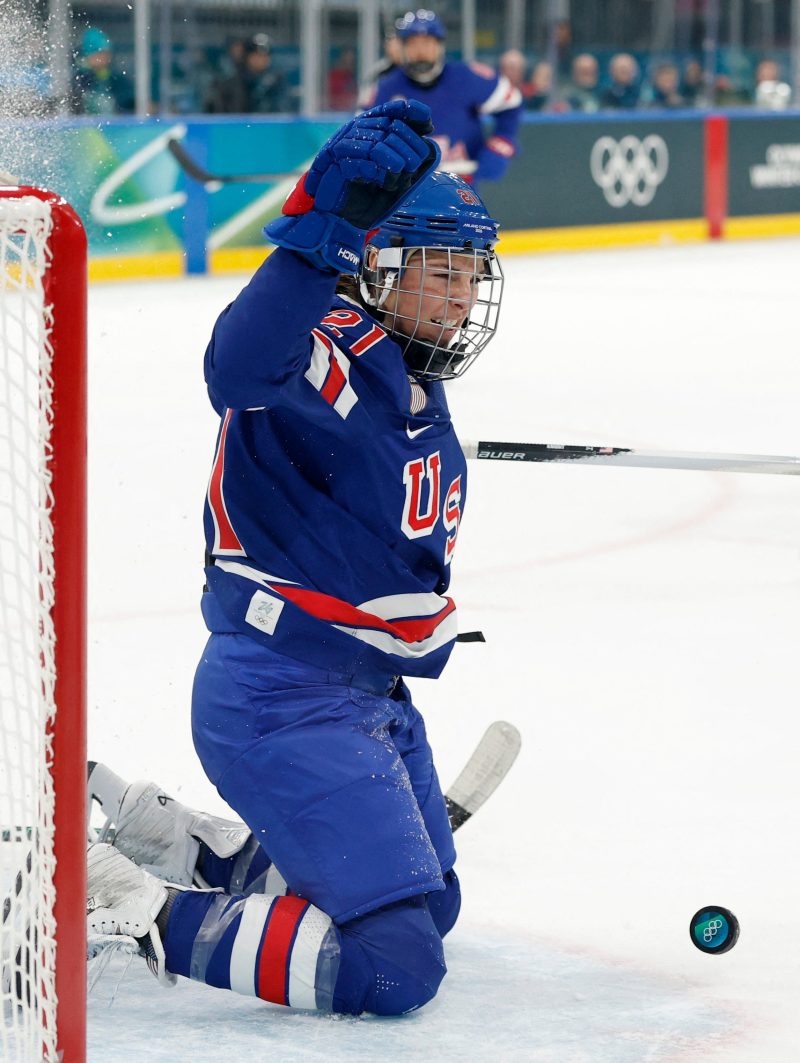 Her first goal in Milan came in the second period of Team USA’s 5-1 opening win against the Czech Republic on Thursday, Feb. 5. Her goal on Saturday puts her within three points of Jenny Potter’s U.S. Olympic record for most points in a Winter Olympic Games of 32.