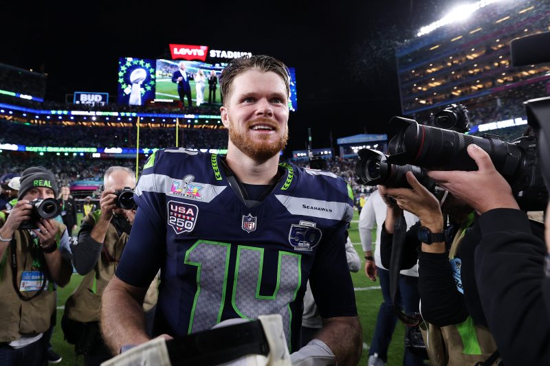 Those were the first words uttered by Sam Darnold, who looked as if he’d barely broken a sweat, as he approached his postgame riser Sunday evening, the Seattle Seahawks quarterback a Super Bowl champion for the first time in his singular eight-year career after his team’s 29-13 beatdown of the New England Patriots.